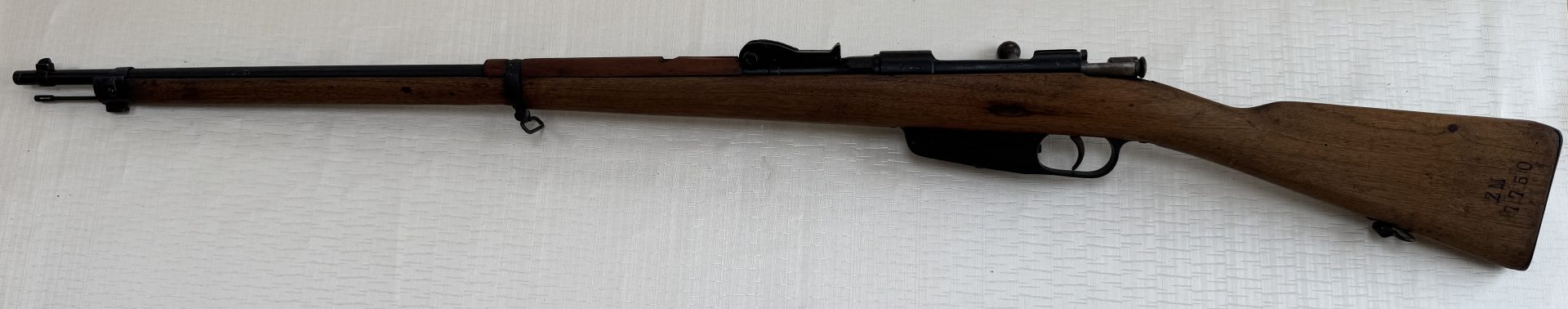 Zum Verkauf steht ein Carcano Infanteriegewehr Modell 1891 im Kaliber 6,5×52 Carcano. Das Gewehr befindet sich in gutem, gebrauchtem Zustand und ist ein klassisches Sammlerstück mit historischer Ausstrahlung.