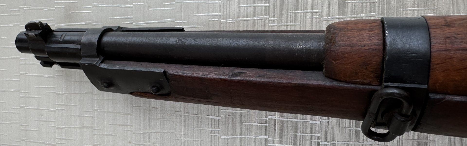 Es handelt sich um einen typischen Truppensonder-Karabiner (TS – Truppe Speciali) mit seitlicher Riemenbügelanordnung, wie er für Spezial- und Unterstützungseinheiten vorgesehen war. Das Stück befindet sich in einem sehr guten, authentischen Originalzustand und wurde nicht überarbeitet oder nachbrüniert.