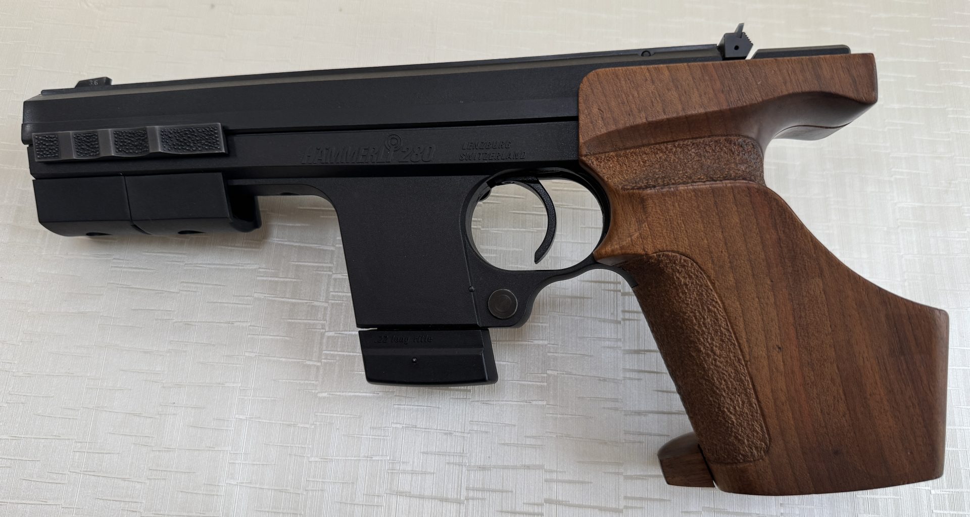 Zum Verkauf steht eine hochwertige Hämmerli Modell 280 Sportpistole aus dem Hause Hämmerli, eine der klassischsten und präzisesten Matchpistolen im internationalen Sportschießen.