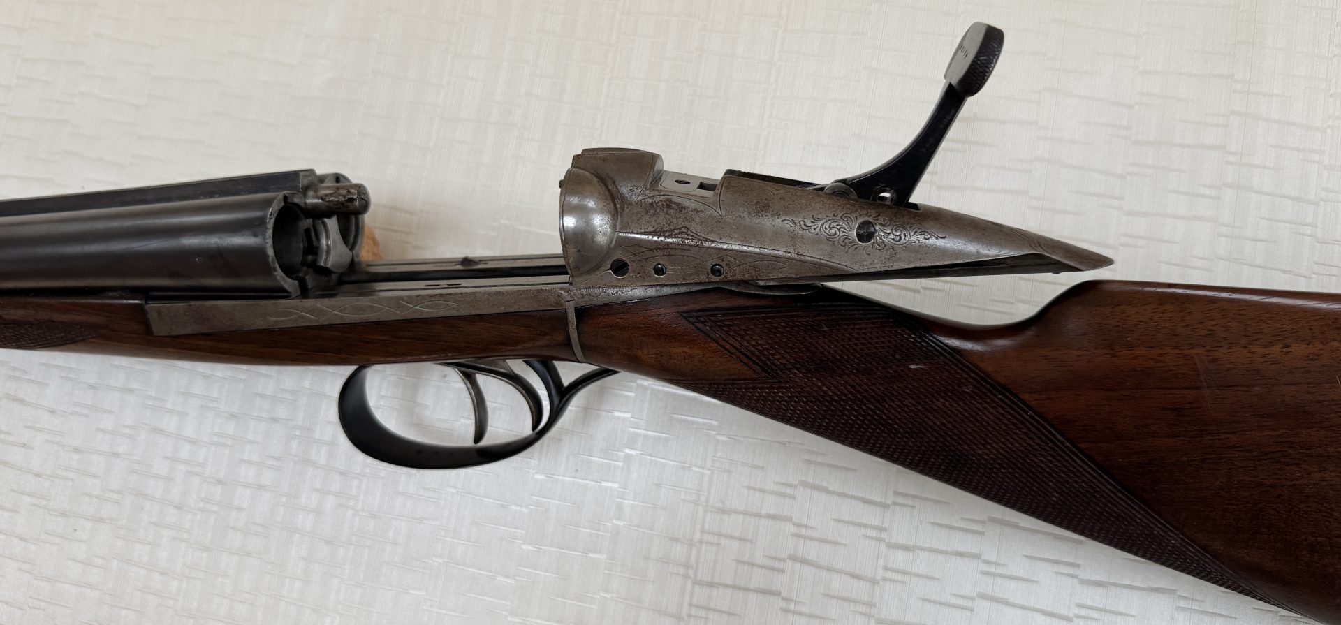 Eine seltene und technisch bemerkenswerte Doppelflinte aus dem traditionsreichen Hause Halifax St. Étienne, die sowohl Sammler als auch praktische Jäger anspricht.