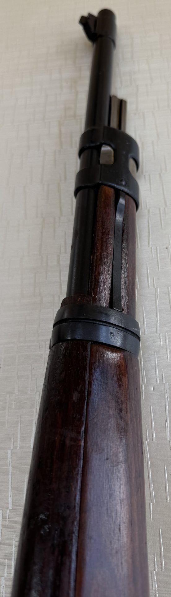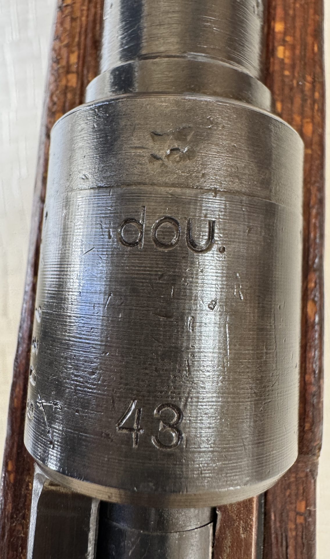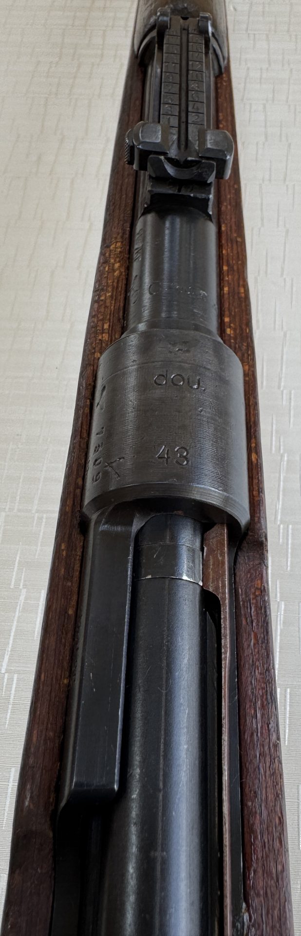 Zum Verkauf steht ein originaler Karabiner 98k im Kaliber 8×57 IS, gefertigt im Jahr 1943 beim renommierten Hersteller Brünn AG (Fertigungscode dou 43).