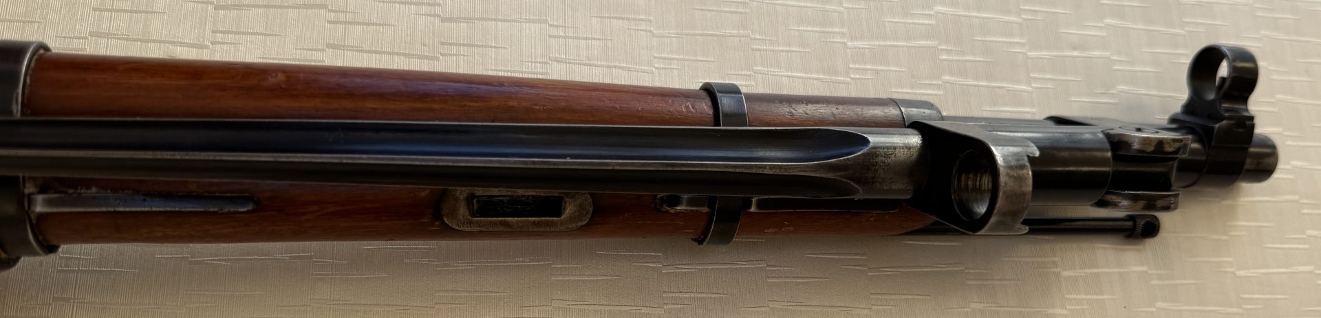 Das Gewehr befindet sich insgesamt in einem ausgesprochen gepflegten Originalzustand. Besonders hervorzuheben ist der hervorragende Laufzustand – innen spiegelblank mit klar erkennbaren Zügen und Feldern, was bei diesen Modellen keineswegs selbstverständlich ist.