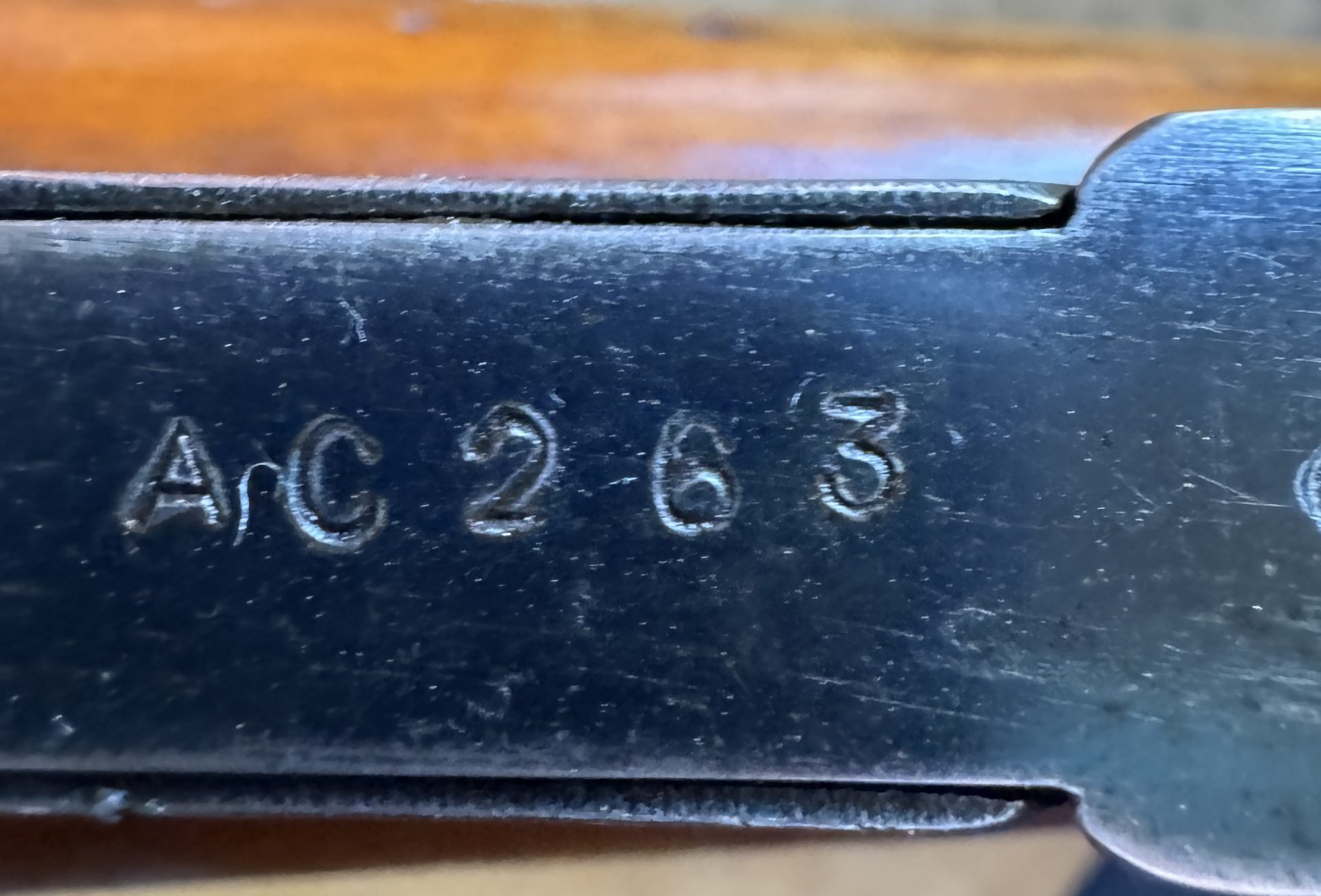 Die originale Brünierung ist deutlich und gleichmäßig erhalten, ohne Anzeichen einer Nachbrünierung oder späteren Überarbeitung. Schraubenköpfe sind unbeschädigt, Kanten sauber und nicht „verwaschen“, was ebenfalls für einen unbehandelten Originalzustand spricht.