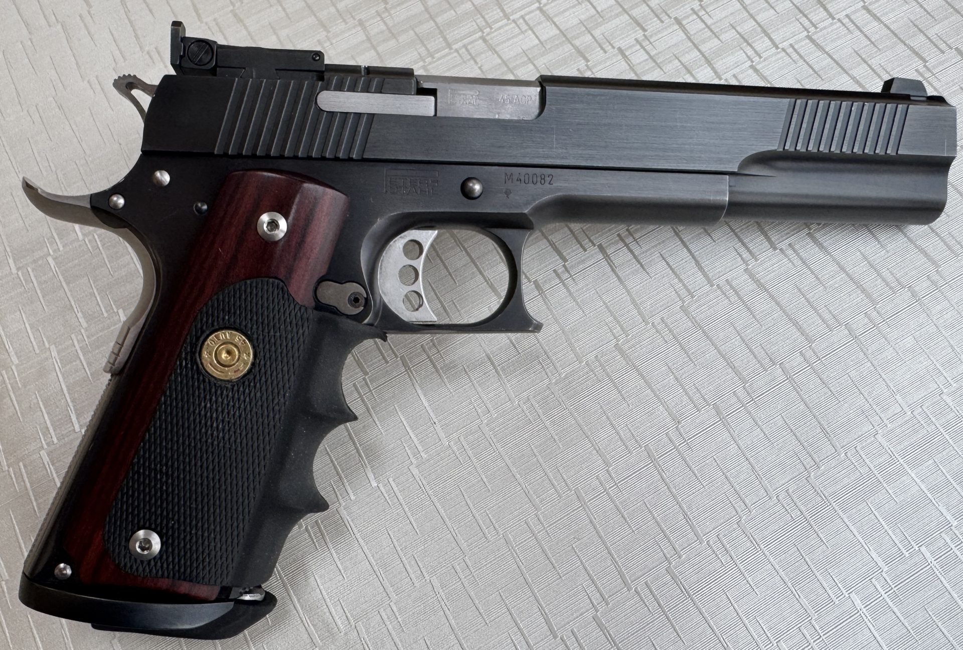 Die angebotene Pistole ist in der Multikaliber-Ausführung gefertigt und wird hier im Kaliber .45 ACP angeboten. Mit ihrem 6-Zoll-Lauf bietet sie eine hervorragende Visierlinie und optimale Voraussetzungen für präzises sportliches Schießen.