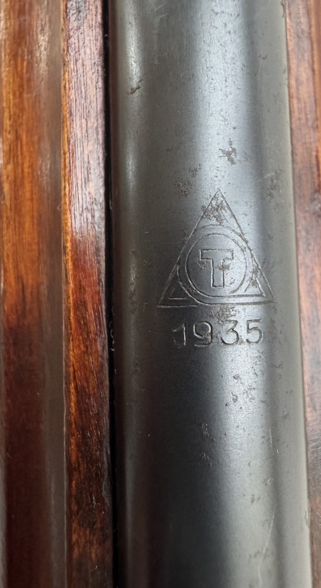 Lauf: innen spiegelblank und freischwingend, außen leichte rostfarbene Patina, die den historischen Charakter unterstreicht