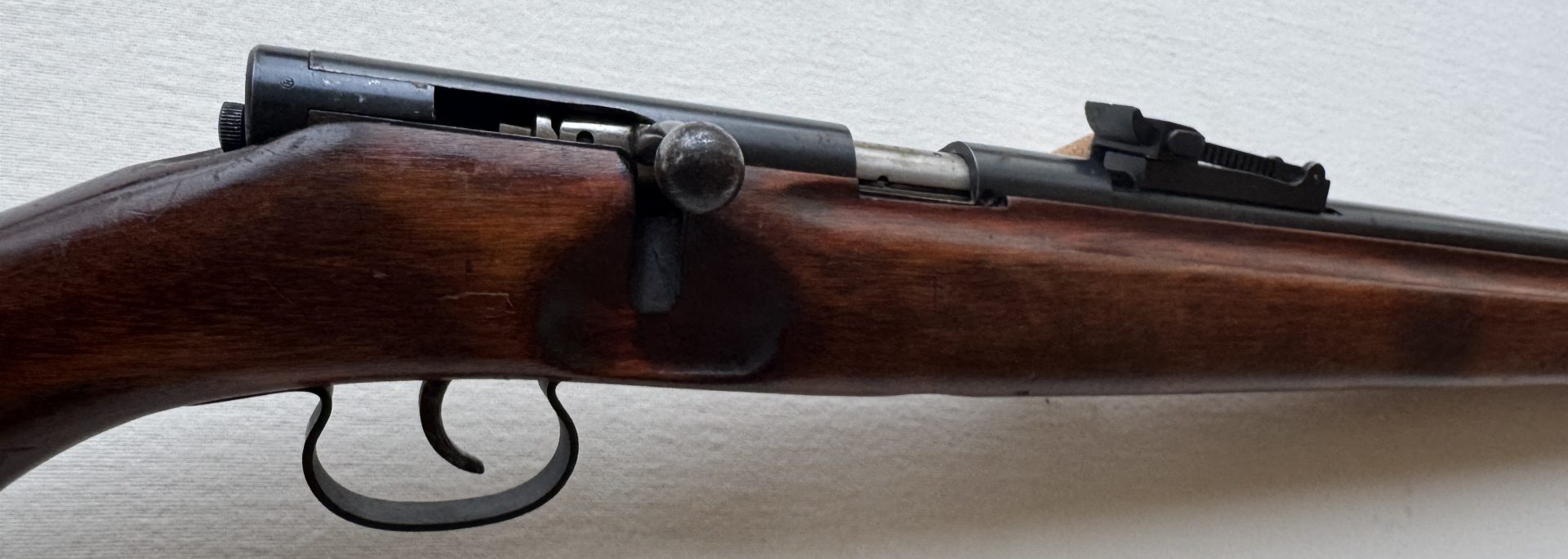 Visierung: offene Schiebevisierung, typisch für Kadetengewehre dieser Bauart